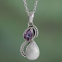 Silver and Rainbow Moonstone Necklace with Faceted Amethyst 'Two Teardrops' Item ID: 2669923889