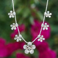'Basket of Posies', necklace is unique and pretty. Too long for me, one knot solved problem. Eye Catching. Wear with 'Urban Love' earrings and 'Weaving Fantasies' ring, both by designer, Achara. Can also wear with large, 'Chiang Mai Rose' earrings by Achara. Price higher than other necklaces by Pakaon Sojintarit...may be because silver is 950. Solid, well made. Happy with purchase.