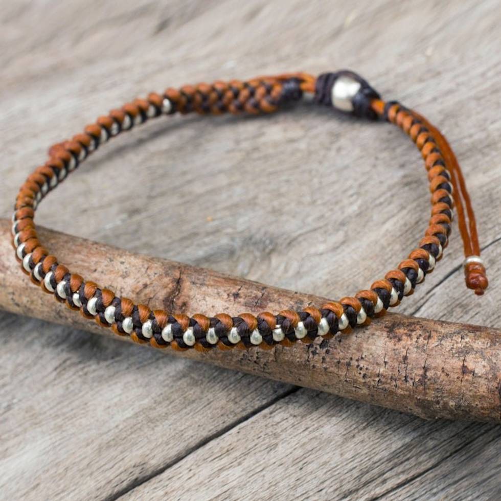 Silver Beads on Brown and Tan Wristband Bracelet 'Brown Tan Progression' Item ID: 2671802323