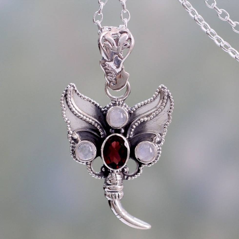 Silver Butterfly with Garnet and Rainbow Moonstone 'Butterfly Triumph' Item ID: 2671793697