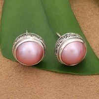 Silver Button Earrings with Pink Cultured Mabe Pearls 'Ethereal Moon' Item ID: 2676659377