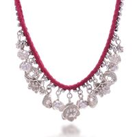 Silver Choker Charm Necklace with Red Cord from Thailand 'Precious Shine' Item ID: 2671796969