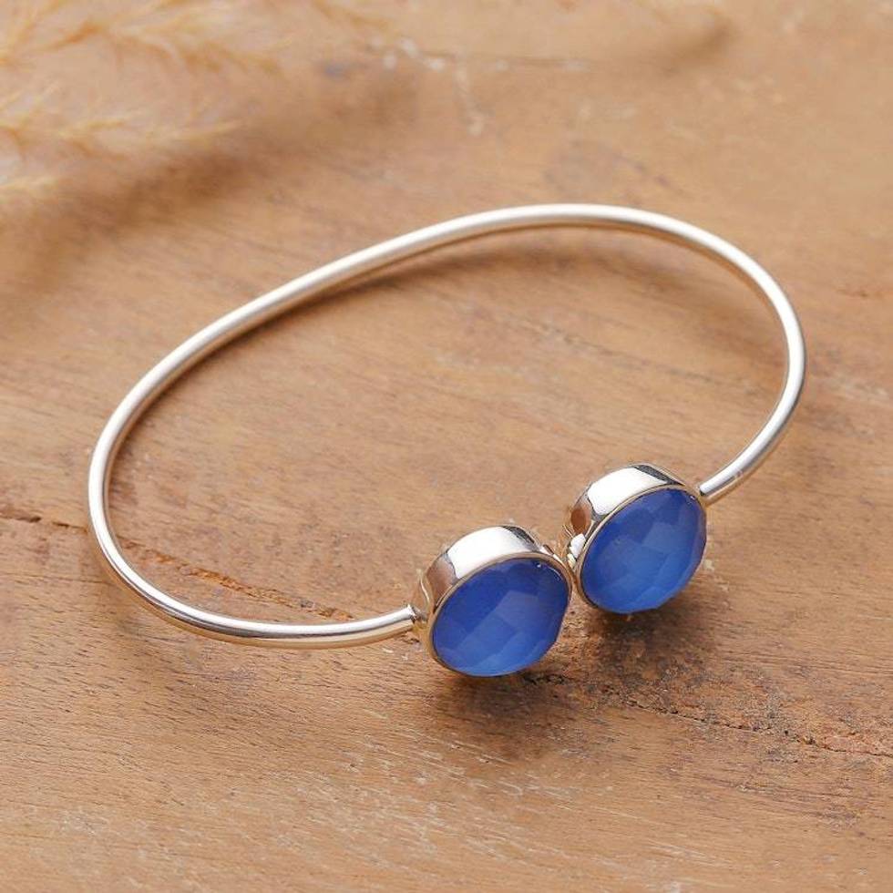 Silver Cuff Bracelet with Blue Checkerboard Chalcedony Gems 'Serenity Aura' Item ID: 2676663817