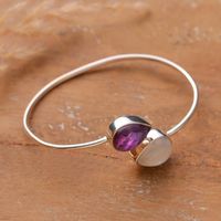 Silver Cuff Bracelet with Pear Amethyst Rainbow Moonstone 'Moonlit Aura' Item ID: 2676663822