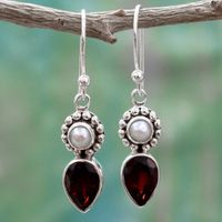 Silver Cultured Pearl Earrings with Garnet from India 'Scarlet Tear' Item ID: 2671619699