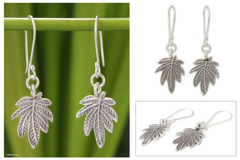 Silver dangle earrings 'Glamorous Leaf' Item ID: 2671803008