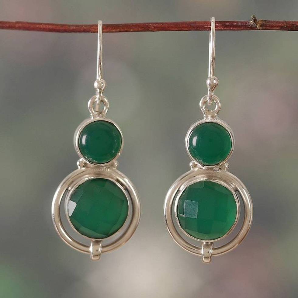 Silver Dangle Earrings with 12-Carat Green Onyx Gemstones 'Glowing Vibrancy' Item ID: 2676664386