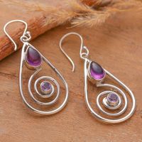 Silver Dangle Earrings with Cabochon and Faceted Amethysts 'Purple Spirals' Item ID: 2676664345