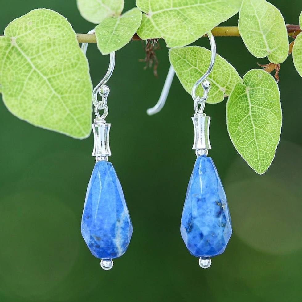 Silver Dangle Earrings with Drop-Shaped Lapis Lazuli Stones 'Blue Dew Drop' Item ID: 2671796823