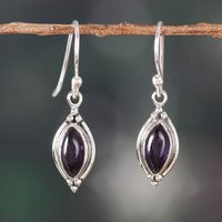 Silver Dangle Earrings with Marquise-Shaped Amethyst Stones 'Purple Flare' Item ID: 2671781249