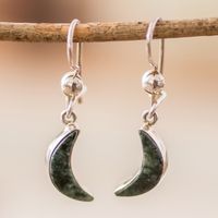Silver Dark Green Jade Crescent Moon Dangle Earrings 'Chic Crescent' Item ID: 2671626742