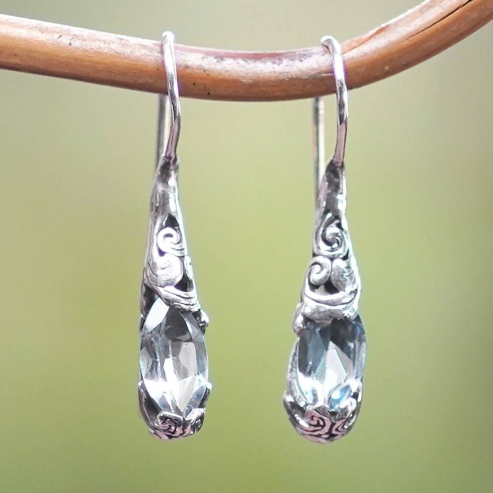 Silver Drop Earrings from Bali with Blue Topaz Stones 'Seeds of Evolution' Item ID: 2671765770