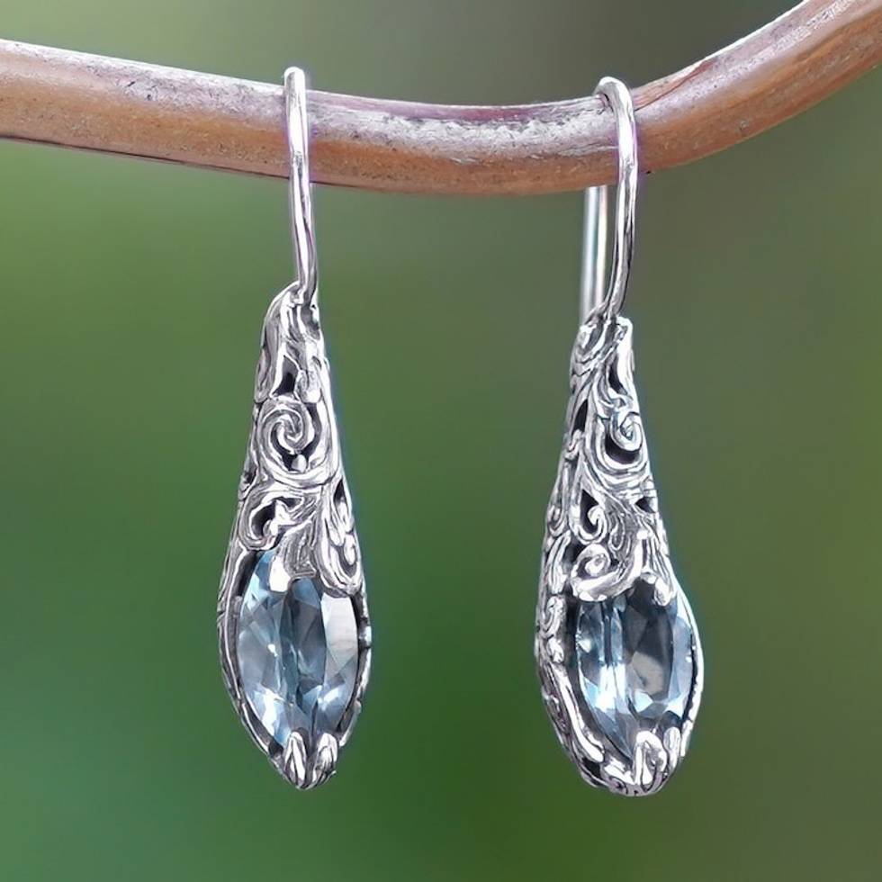 Silver Drop Earrings with Faceted Blue Topaz Gemstones 'Fantastic Nest' Item ID: 2671765208
