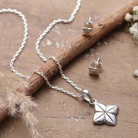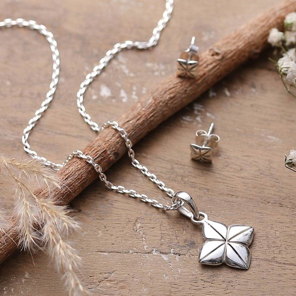 Silver Floral Pendant Necklace and Stud Earrings Jewelry Set 'Gentle Bloom' Item ID: 2671781170