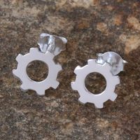 Silver Gear Earrings with High Polish Finish from Thailand 'Gears Turning' Item ID: 2669929619