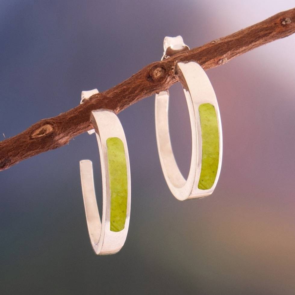 Silver Half-Hoop Earrings with Inlaid Serpentine Gem 'Dual Enchantment' Item ID: 2671697972