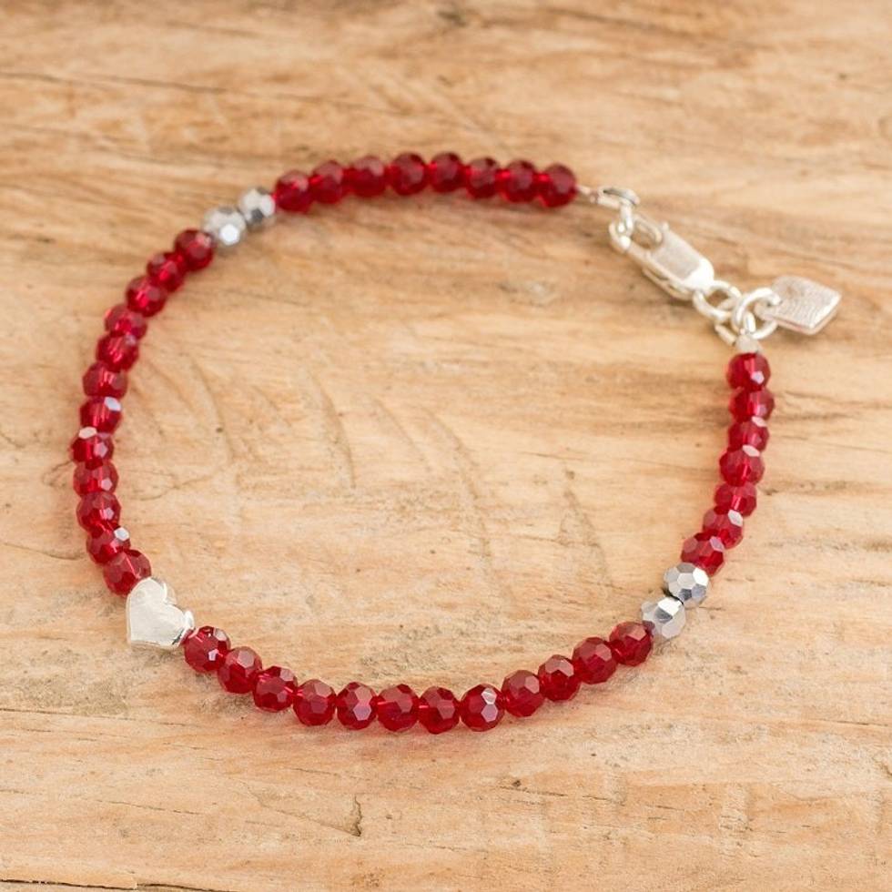 Silver Heart Pendant Bracelet with Red Crystal Beads 'Love Emotions' Item ID: 2671771418