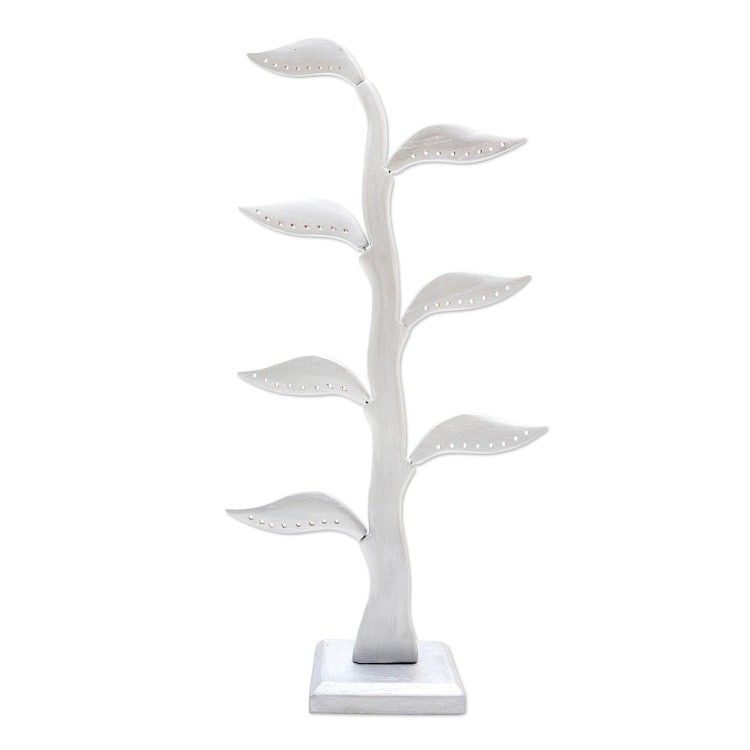 Silver Jempinis Wood Leaf-Themed Jewelry Holder 21 Inch 'Daun Salam in Silver' Item ID: 2671745055