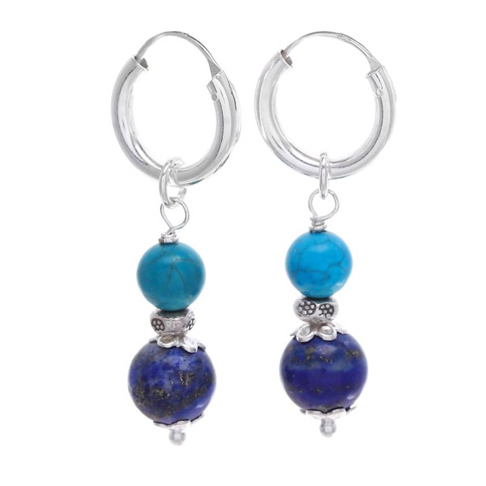 Silver Lapis Lazuli Reconstituted Turquoise Hoop Earrings 'Fab Duo' Item ID: 2671640882