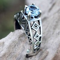Silver Lattice Handcrafted Blue Topaz Cocktail Ring 'Sky Goddess Temple' Item ID: 2676666759