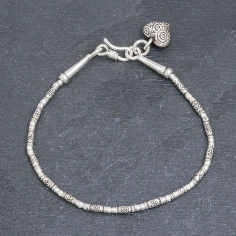 Silver Link Bracelet with Heart Charm from Thailand 'Honest Heart' Item ID: 2669926230