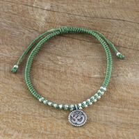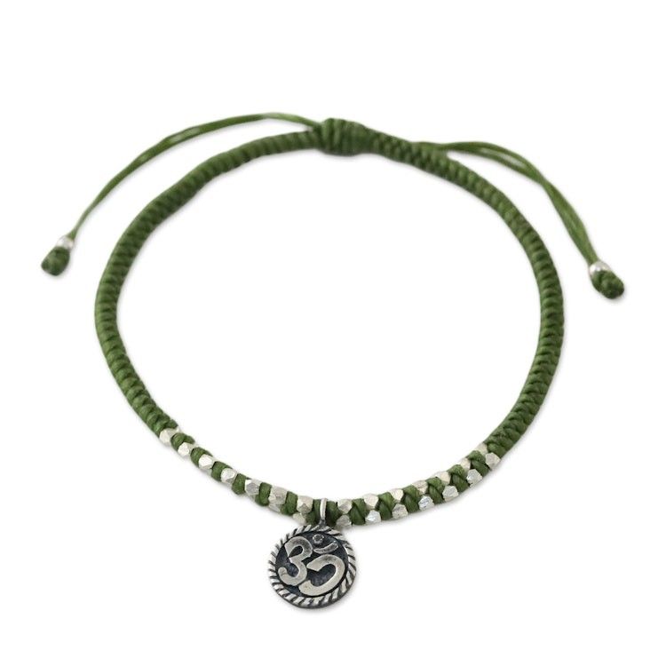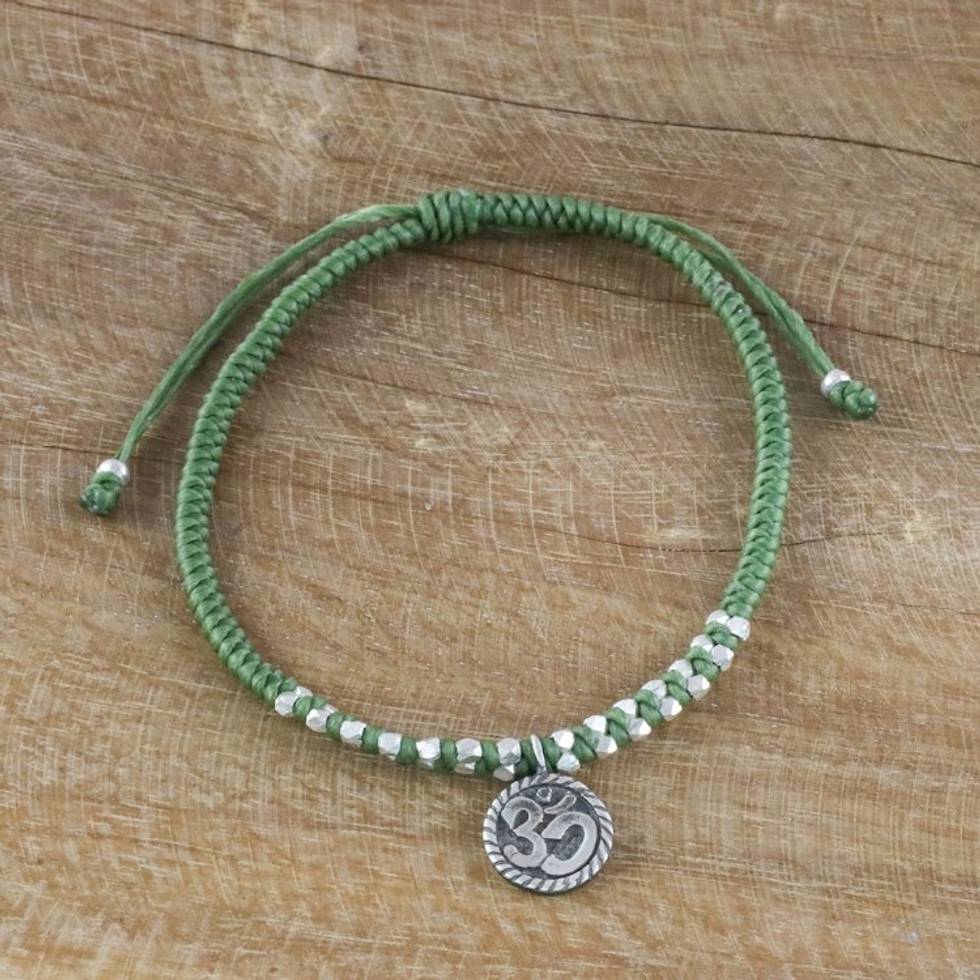 Silver Om Charm Bracelet on Braided Green Cords 'Ancient Om in Green' Item ID: 2671800741