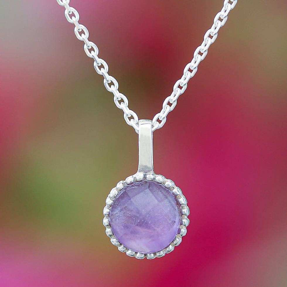 Silver Pendant Necklace with Round Faceted Amethyst Gem 'Radiant Purple' Item ID: 2671796629