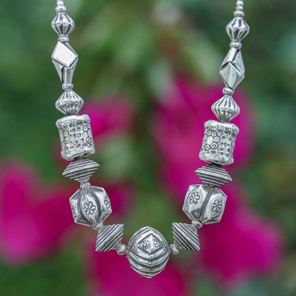 Silver Pendant Necklace with Thai Stamped Hill Tribe Beads 'Striking Style' Item ID: 2676653021