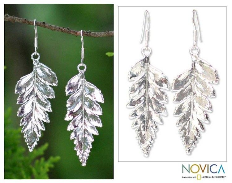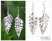 Silver Plated Natural Leaf Earrings 'Fern Love' Item ID: 2671802774