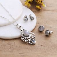 Silver Rainbow Moonstone Blue Topaz Necklace Earrings Set 'Iridescent Blend' Item ID: 2671786948