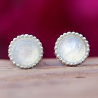 Silver Stud Earrings with Natural Rainbow Moonstone Gems 'Luminous Flair' Item ID: 2671796851