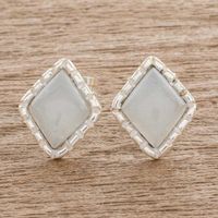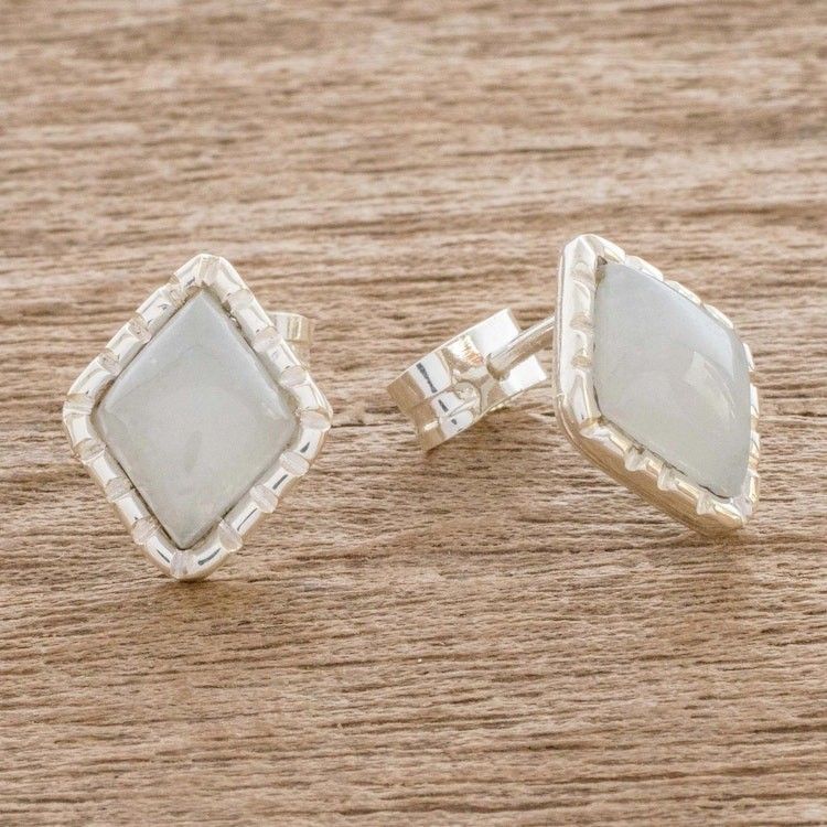 Silver Stud Earrings with Pale Ice Green Jade Diamonds 'Ice Green Diamond' Item ID: 2671777320