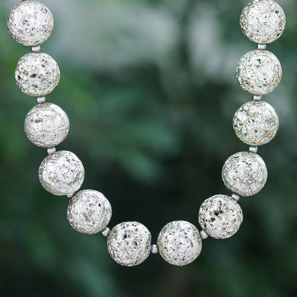 Silver-Toned Lava Stone and Hematite Beaded Necklace 'Blazing Silver' Item ID: 2671797415