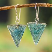 Silver Triangular Recycled CD Dangle Earrings from Guatemala 'Refined Triangles' Item ID: 2671769354