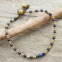 Single Strand Brass Bead Anklet with Lapis Lazuli 'Cheerful Walk' Item ID: 2669926680