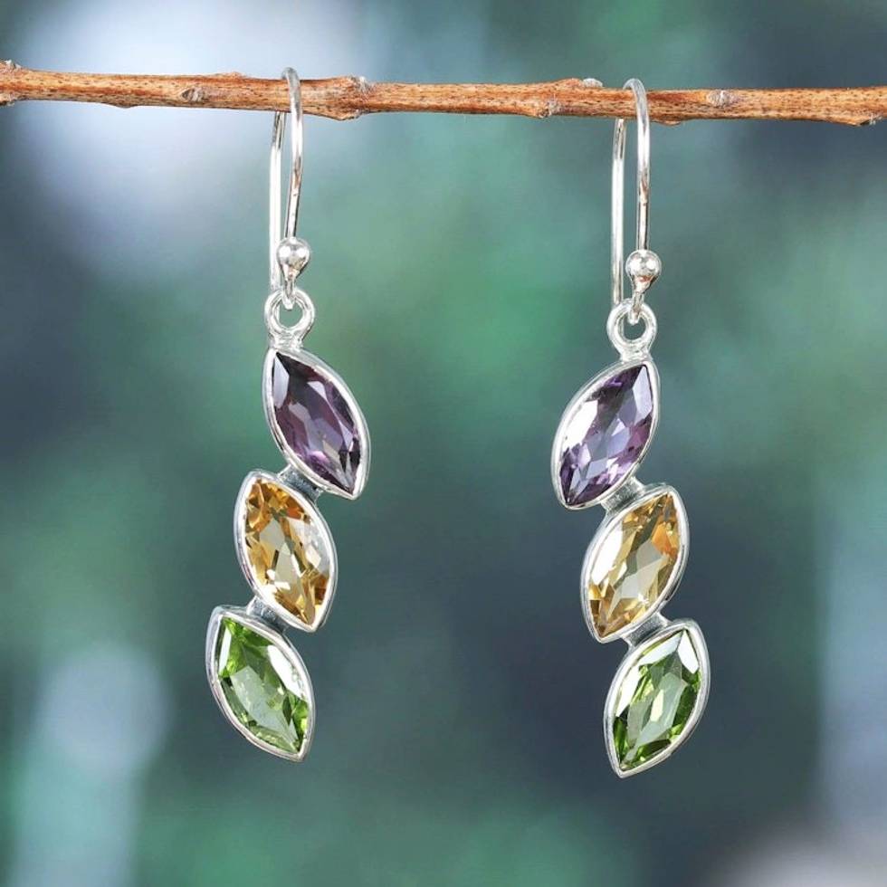 These earrings are nicer than I expected. The blue topaz has more color ! The peridot and amethyst and great too. All in all a lovely pair of earrings that I am proud to wear. Love the different stone shapes. You can count on the wonderful craftmanship in Niru's products.