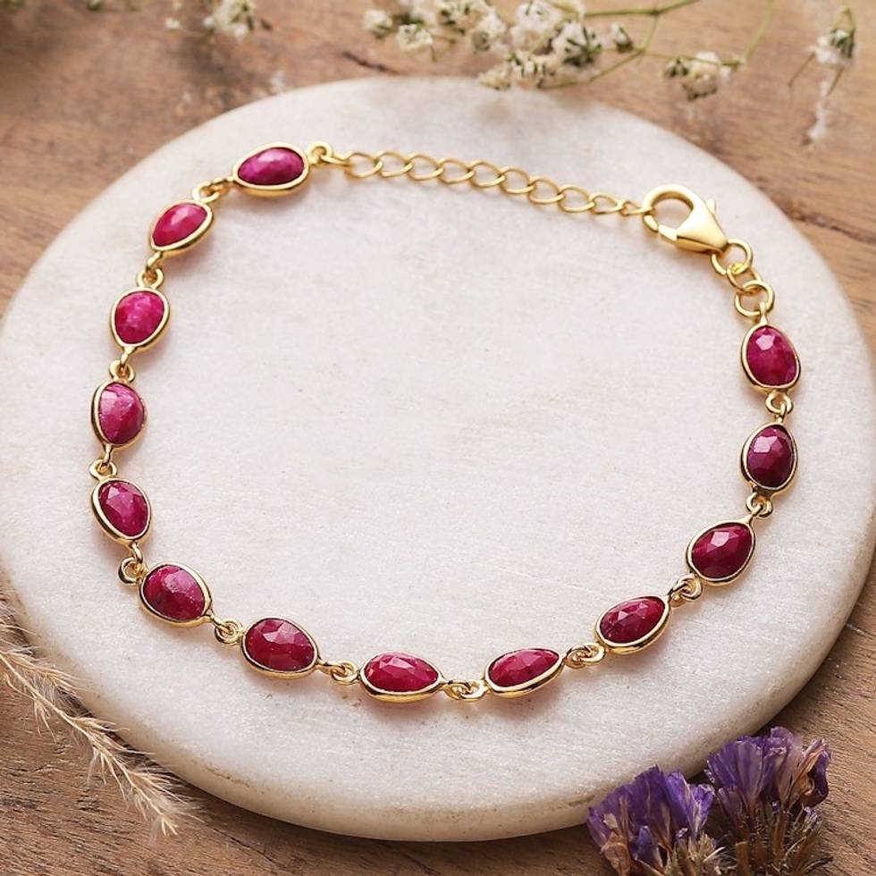 Six-Carat Ruby and 18k Gold-Plated Sterling Silver Bracelet 'Capricious Glam' Item ID: 2671622272