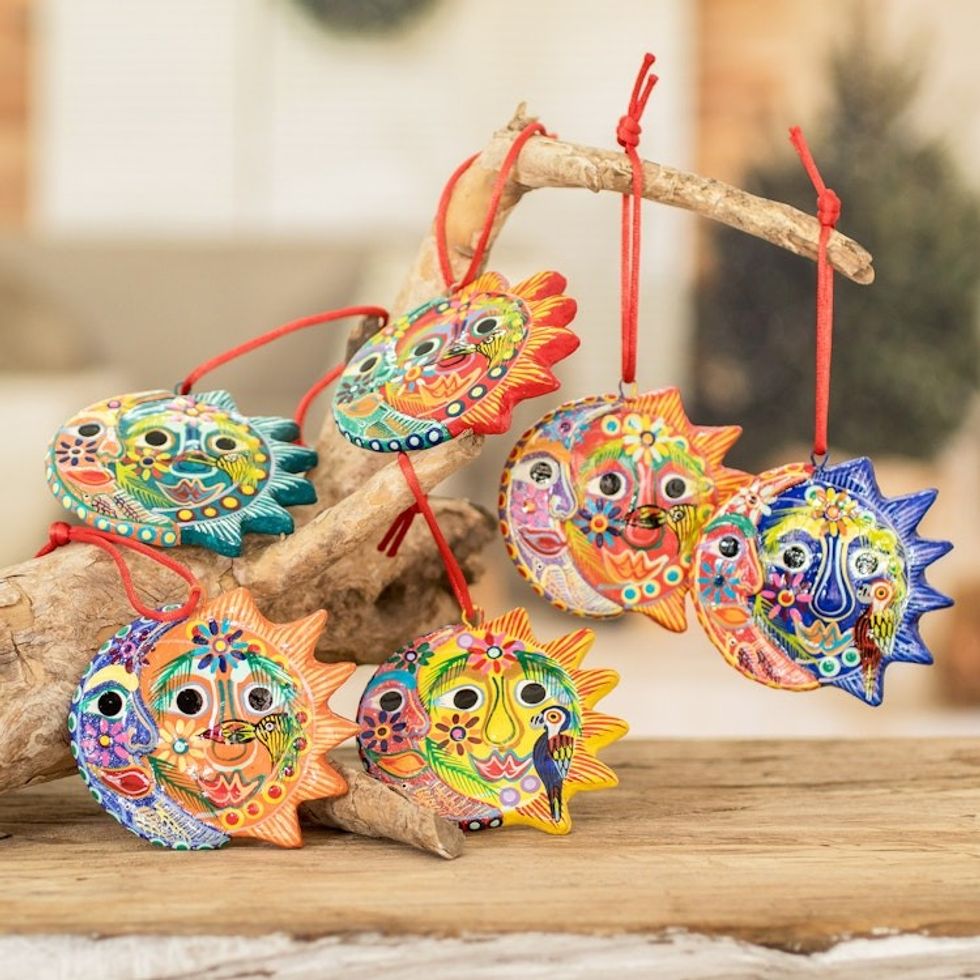 Six Colorful Handcrafted Ceramic Eclipse Ornaments 'Flower Eclipse' Item ID: 2669934111