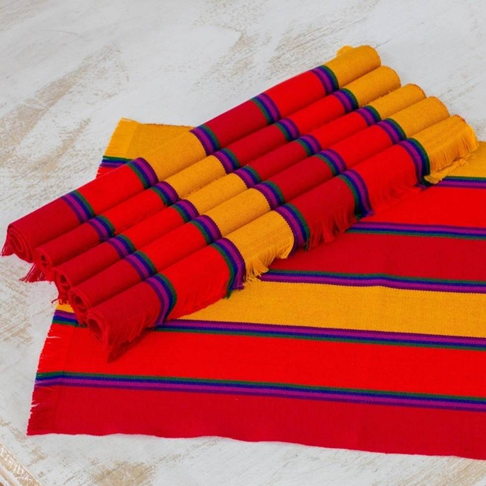 Six Handwoven Striped Cotton Placemats from Guatemala 'Country Sunset' Item ID: 2671777994