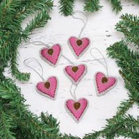 Six Heart-Shaped Beaded Ornaments from India 'Beaded Hearts' Item ID: 2669892198