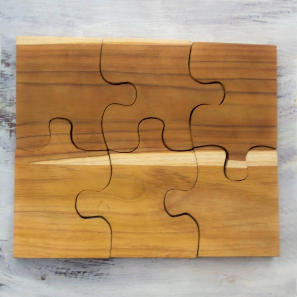 Six Interlocking Eco-Friendly Teak Wood Trivets 'Puzzle' Item ID: 2669934792