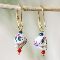 Skull Motif Dangle Earrings 'Smiling Calavera' Item ID: 2669932402