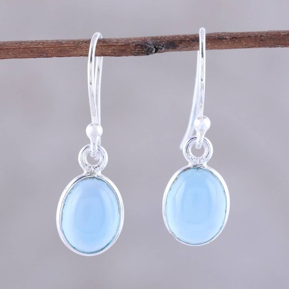 Sky Blue Chalcedony Dangle Earrings from India 'Luminous Sky Blue' Item ID: 2669943916