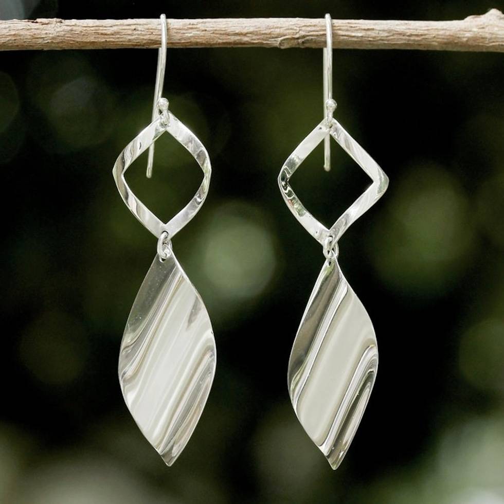 Sleek Handcrafted Sterling Silver Contemporary Thai Earrings 'Shimmering Helicopters' Item ID: 2671801283