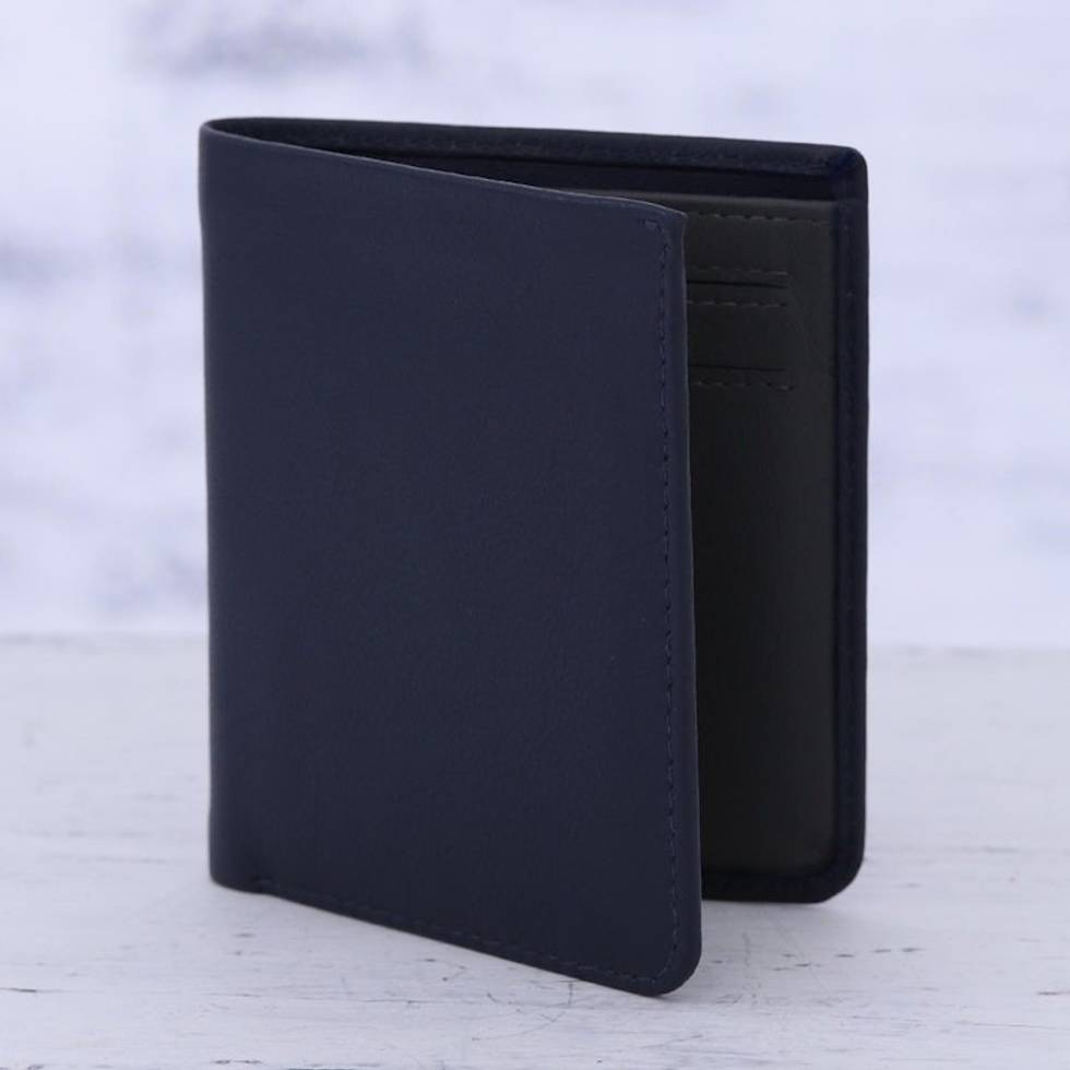 Sleek Navy Blue Leather Wallet from India 'Noble Navy' Item ID: 2671791115