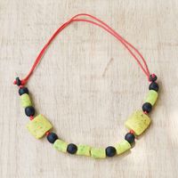 Sliding Knot Recycled Glass Beaded Necklace 'Dearest One' Item ID: 2671803990