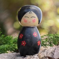 Small Albesia Wood Statuette in Black 'Shy Lady in Black' Item ID: 2671746539