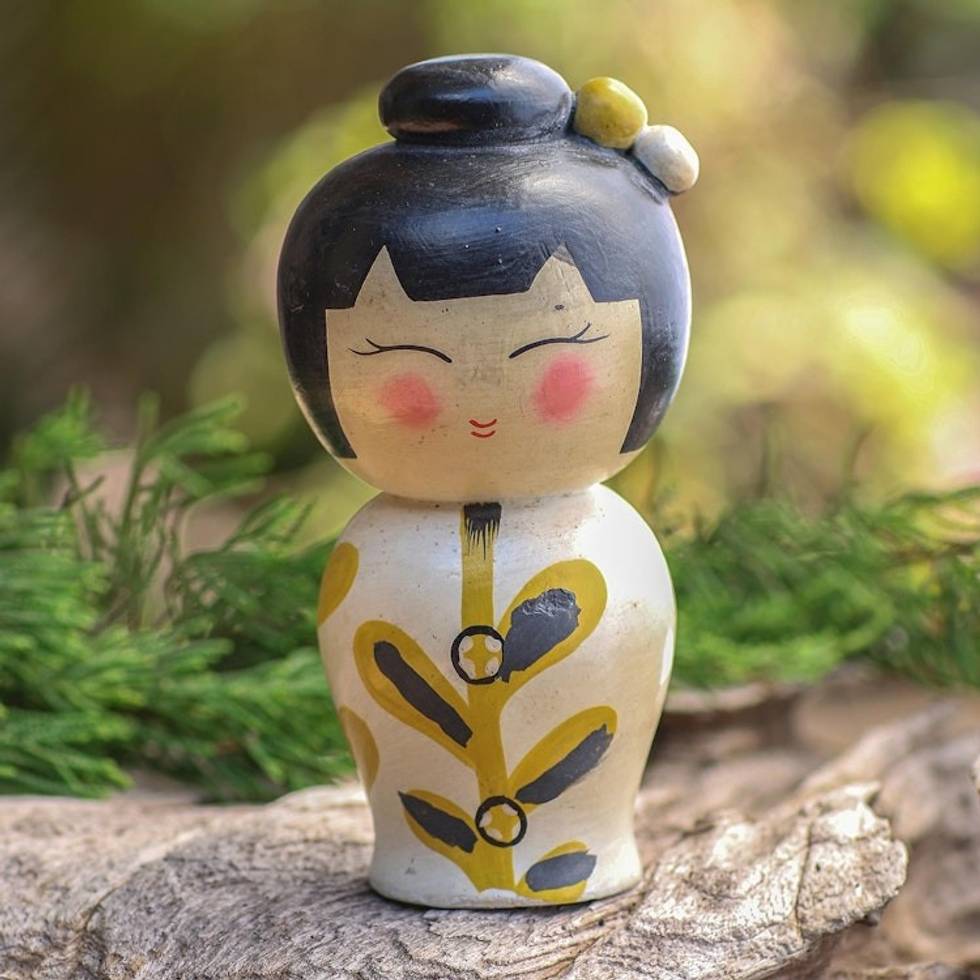 Small Albesia Wood Statuette in White 'Shy Lady in White' Item ID: 2671746157
