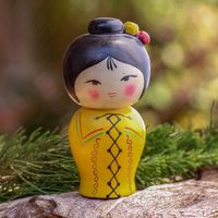 Small Albesia Wood Statuette in Yellow 'Shy Lady in Yellow' Item ID: 2671820977