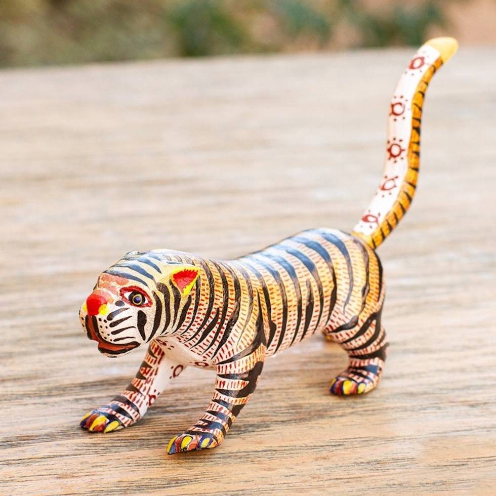 Small Cedar Wood Tiger Alebrije Sculpture 'Brilliant Tiger' Item ID: 2669897273